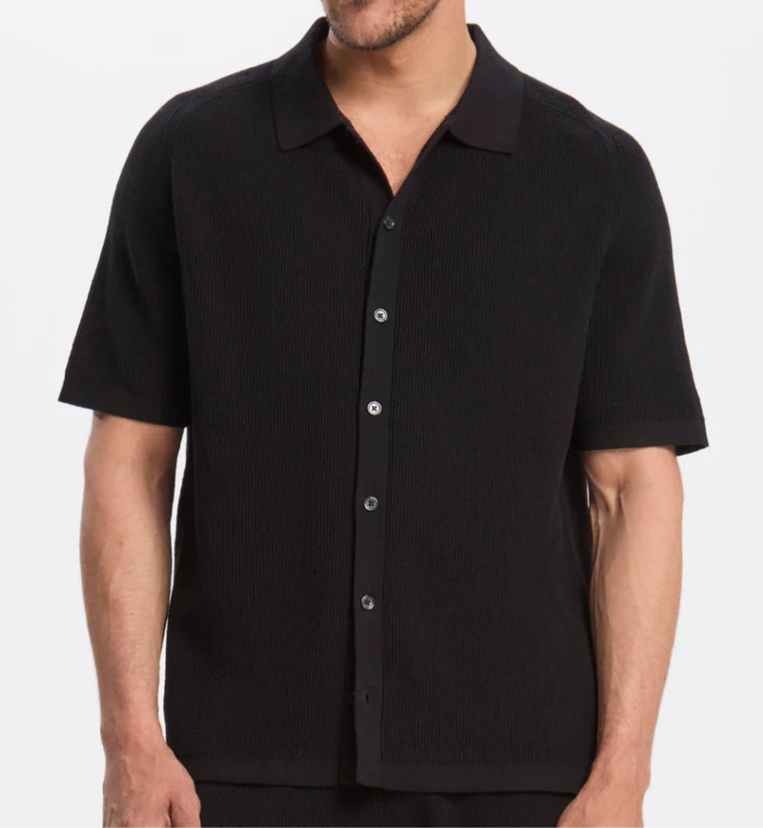 Męska czarna koszula z krótkim rękawem zapinana na guziki ma krótki rękaw i zapięcie na guziki z przodu. Jest wykonana w czarnym kolorze, oferując neutralny odcień odpowiedni do różnych strojów. Koszula może być noszona zarówno na co dzień, jak i półformalnie, w zależności od tego, jak jest stylizowana. Jest odpowiednia do użytku w pomieszczeniach, w ciepłe dni lub jako warstwa pod odzieżą wierzchnią w chłodniejsze dni. Sylwetka umożliwia łączenie ze spodniami, dżinsami lub szortami. Ten model jest przeznaczony do wszechstronnego noszenia na co dzień.